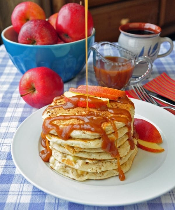 Here’s another fabulous way to get the day started! Fluffy apple pancakes from Rock Recipes with fresh apple slices and warm caramel sauce. A stack of these would please kids of all ages.