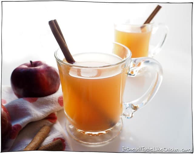 Warm apples are just as tasty in a glass. This straight-forward apple cider is simmered with cinnamon, cloves and allspice. It Doesn’t Taste Like Chicken has this simple recipe to warm you up from head to toe.