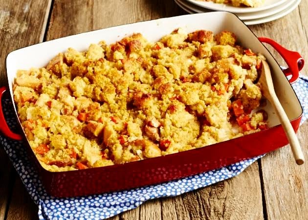 Sweet Potato Chronicles does a cornbread stuffing with chopped apples that will blow your mind! Serve with ham, turkey or chicken for a family dinner to please a crowd.