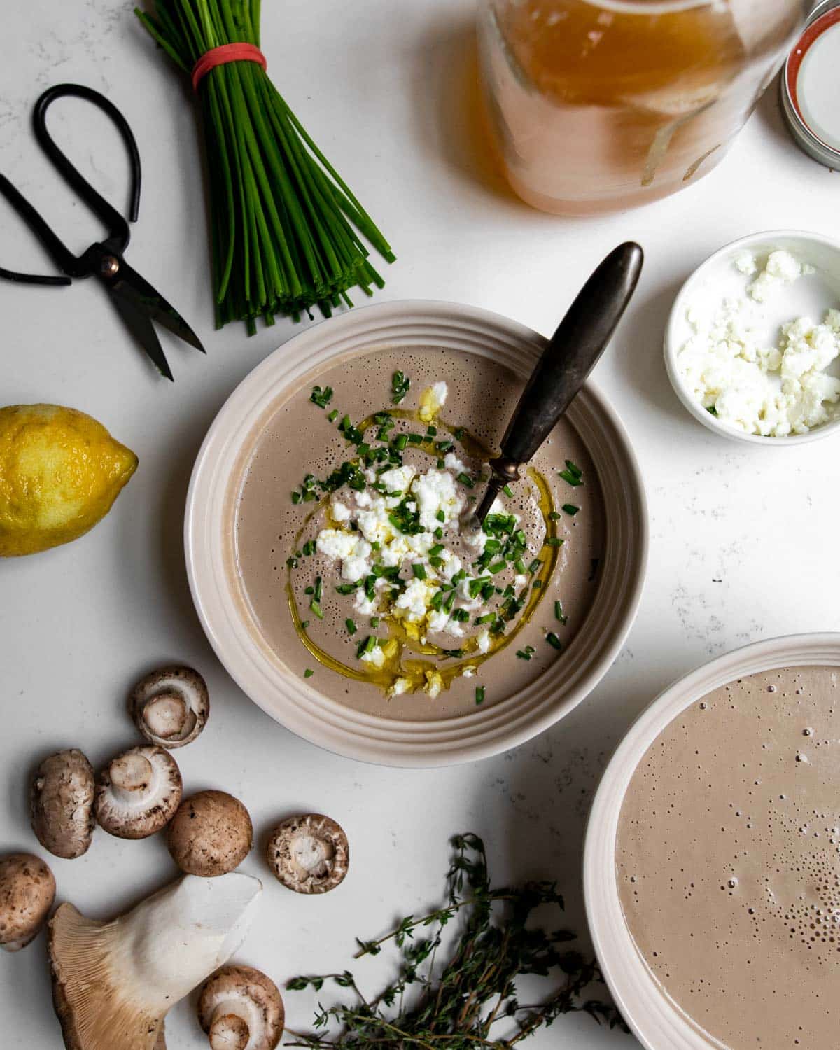 This velvety mushroom soup celebrates the earthy, umami-rich flavors of fresh local mushrooms. With walnuts for body, tangy goat cheese for creaminess, and bright lemon zest to balance it all, this blender soup transforms simple ingredients in to something surprisingly luxurious, with no stovetop required.