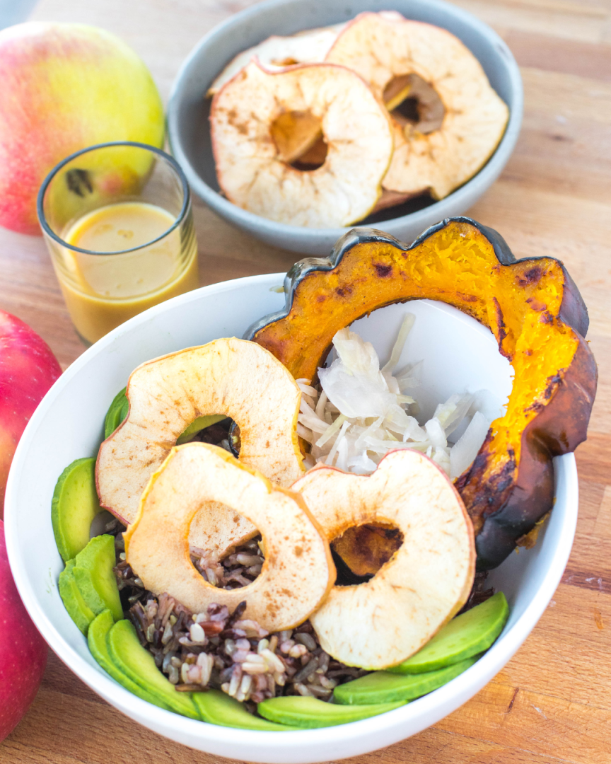 This apple and squash dish incorporates foods with tons of good-for-your-gut fibre, while also creating a balanced bowl of deliciousness through several other health-conscious add-ins.