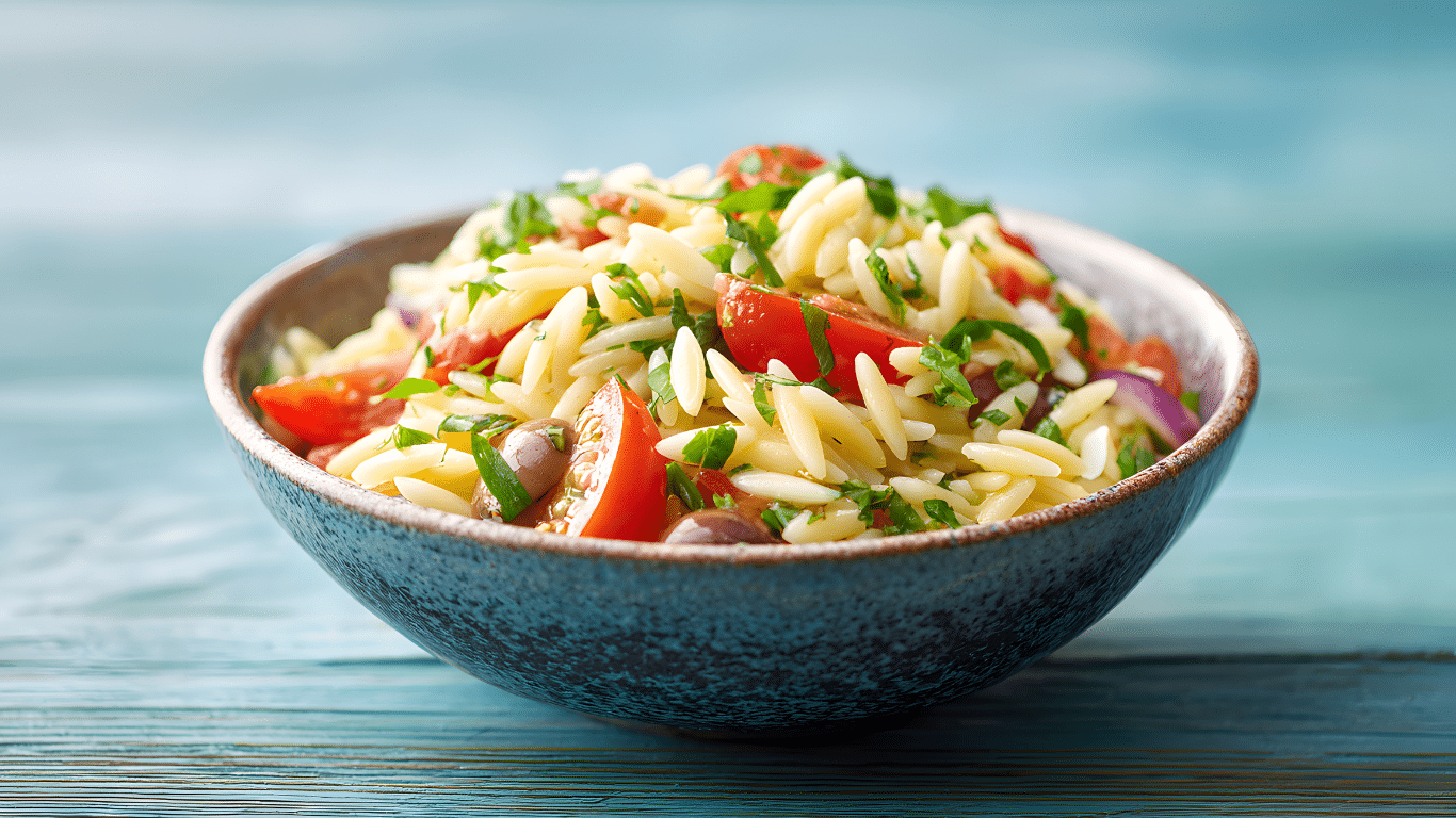 Orzo Salad with Roasted Ontario Greenhouse Peppers & Cucumbers