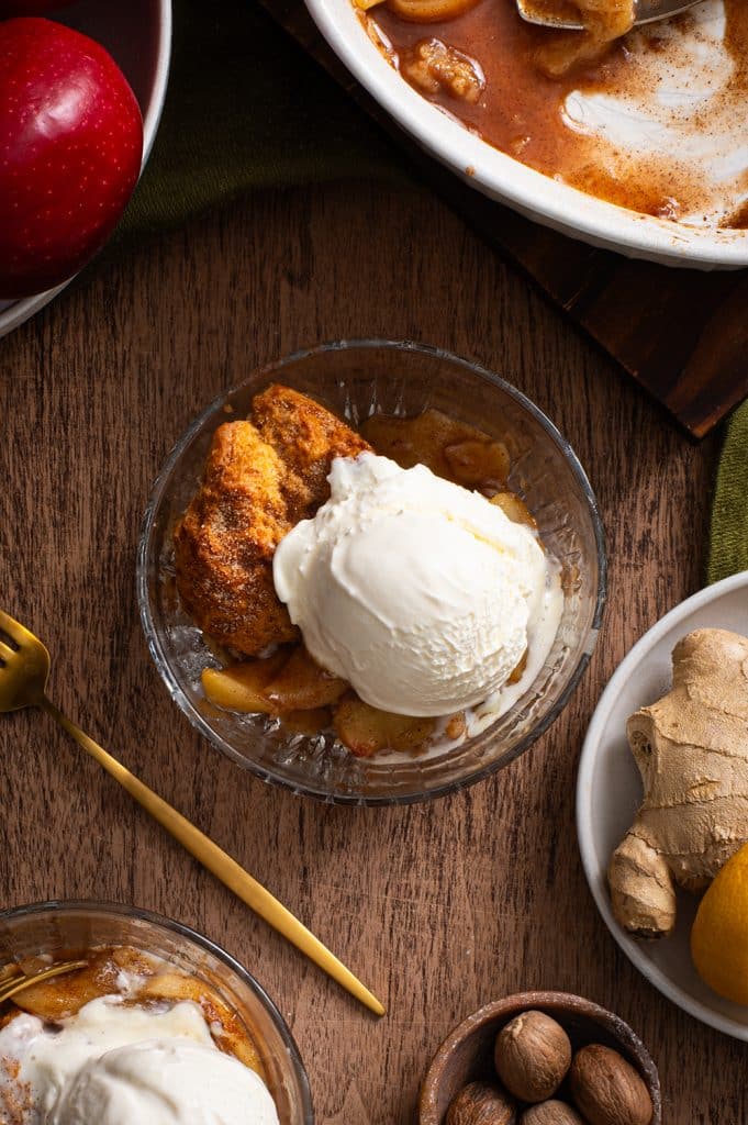 Let the pudding cool for 10 minutes in the pan before scooping it into bowls and topping with ice cream. Serve immediately.